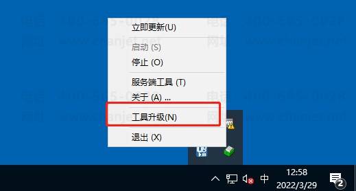 4、右下角找到 用友U8自动更新服务端 (绿色橡皮擦模样的),选择工具升级;
