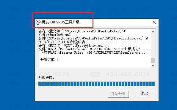 5、点击开始升级,升级 用友U8自动更新服务端 更新到最新版本即可;如下图