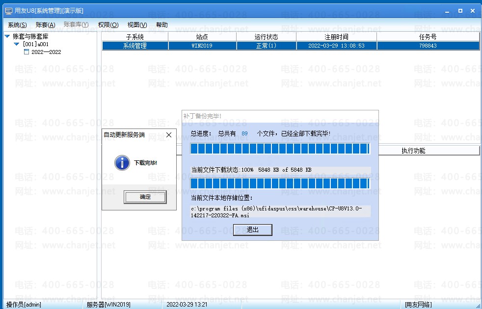 7、保存成功后,在右下角 用友U8自动更新服务端 点 立即更新 就会出现 新补丁列表 如下图 如果不想赛选,就直接全部选择即可 如果想赛选 就直接点右边产品模块过滤 直接过滤掉不需要的模块补丁即可 然后点下载 就可以自动开始下载;我这里显示89个补丁(截止日期:2022年三月22日)
