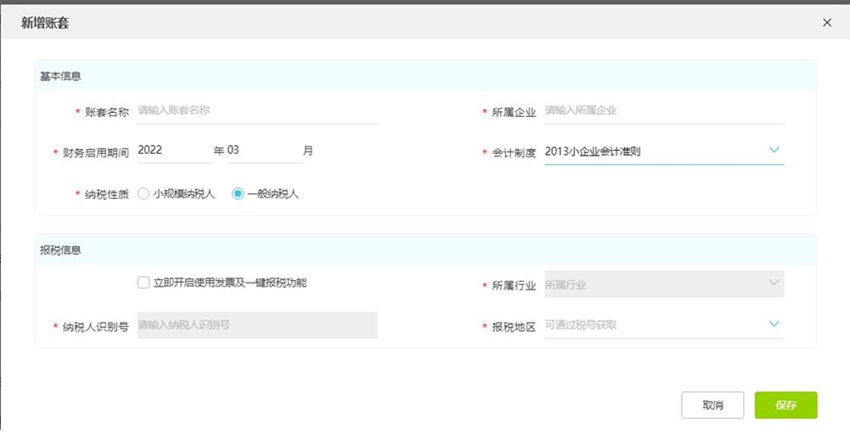 (2) 所属企业:可以和账套名称一致,可自定义便于区分账套,无强制要求。