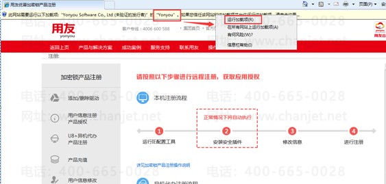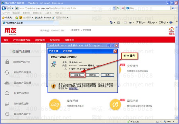 打开产品注册网站http://register.yonyou.com/,在右侧区域点击图标【安全插件】如下图。
