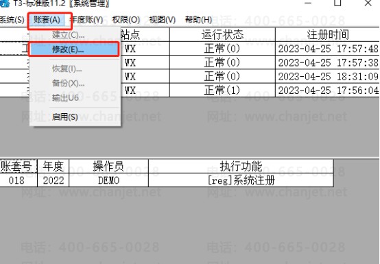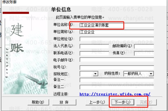 打开【系统管理】-【系统】-【注册】,用账套主管登录,选择对应的账套,年度随意选择,【账套】-【修改】,点击【下一步】,输入对应的单位名称,继续点击【下一步】,一直到保存即可