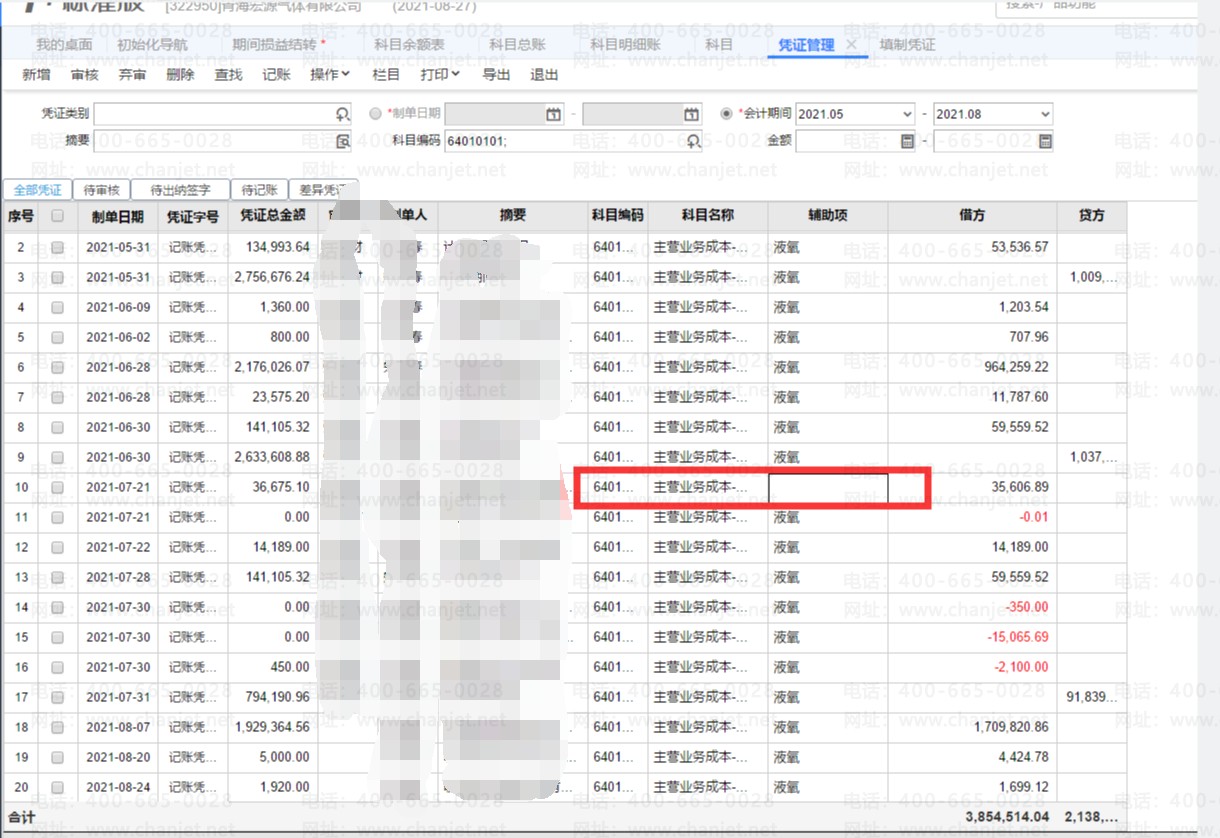 2。凭证管理查看科目64010101生成的凭证