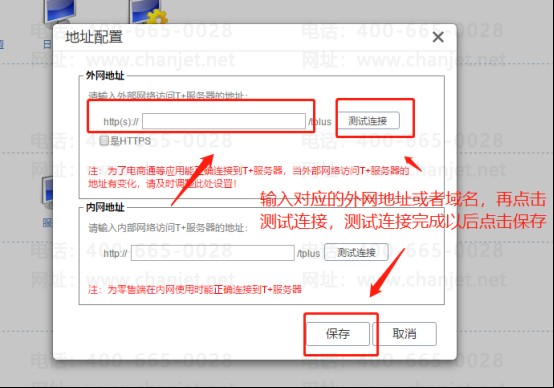POS提示‘请用admin登录,在服务器配置-地址配置处,设置内部或外部网络访问T+服务的地址!’报错