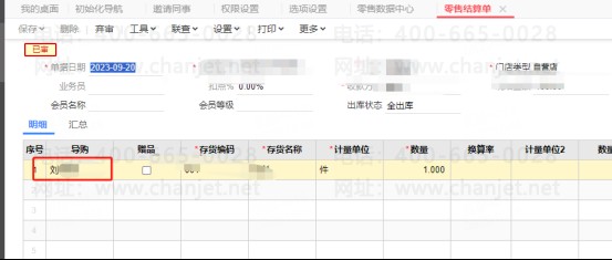 POS开单录入了导购员,零售单上也有导购员,但是零售结算单上不显示导购员