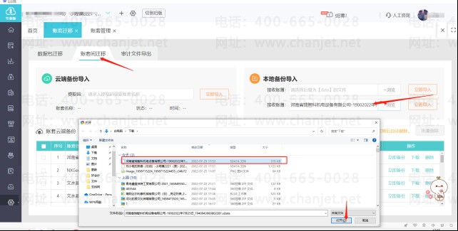 点击【浏览】可以看到默认是选择sdata格式的,可以选择其他格式的文件导入但是会报错导入不进去的,在账套迁移—账套间迁移只能上传sdata格式的文件。