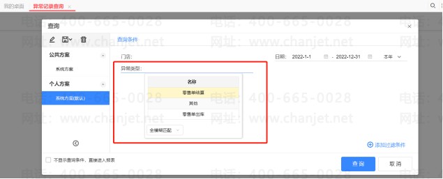 一、异常类型主要分为:零售单结算、零售单出库、其他