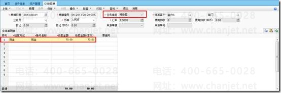 181日收到客户A预收款70