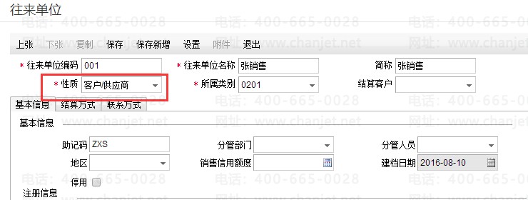 1、把员工当做往来单位来维护,新增一个往来单位如“张销售”,单位性质为“客户/供应商”
