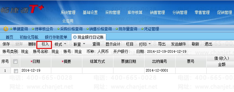 2)进行现金账号日记账中,点击引入,日记账中会生成一笔现金增加的记录。