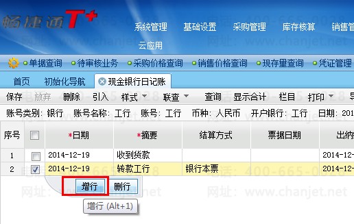 1)银行账号,左键序号“点击增行