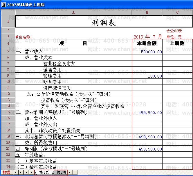 2007年新会计准则利润表的本月数可以取到数据,上期金额列没有公式也没有数据?