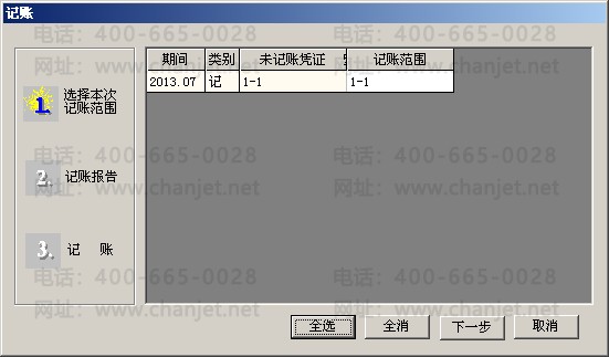 2.进入总账系统,点击“填制凭证”,做一张2013年7月的凭证并进行记账: