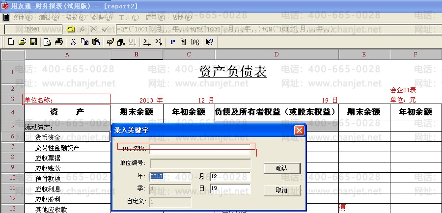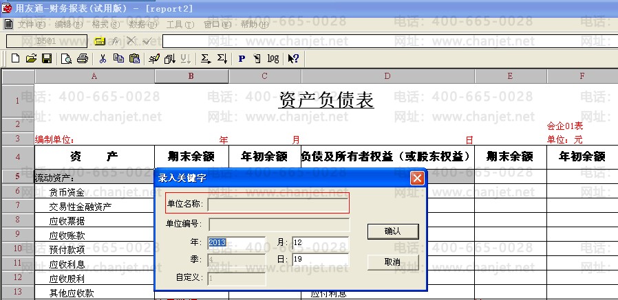 5.切换到报表数据状态,录入关键字时,‘单位名称’可以输入