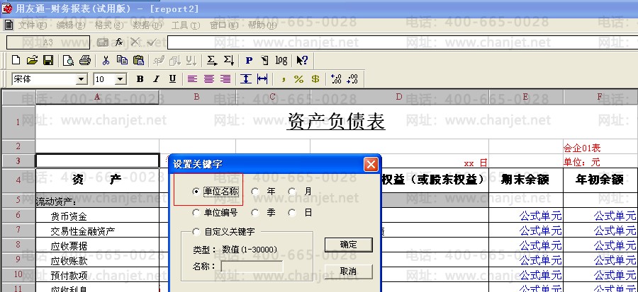 财务报表中有‘编制单位’字样,但录入关键字时,‘单位名称’置灰,无法录入,应如何设置?