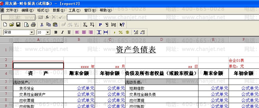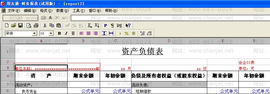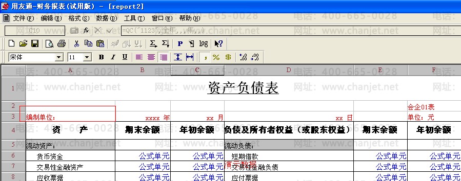 2.切换到报表格式状态,将‘编制单位’字样删除