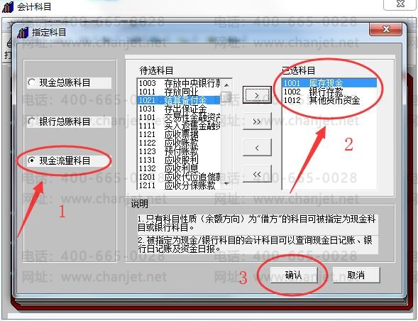 第二步:指定会计科目为【现金流量科目】后,点击【确认】;