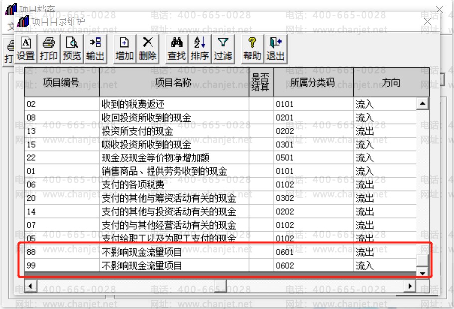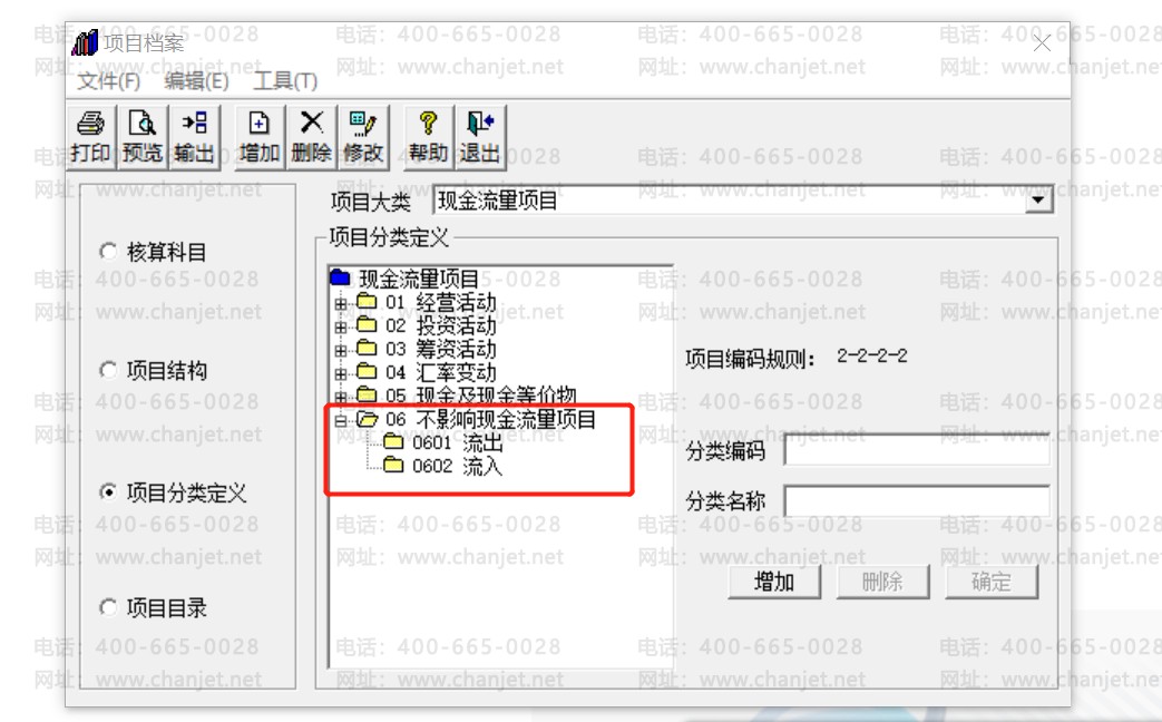 需要先增加不影响现金流量项目的分类,再到分类下方增加流入和流出的末级,在维护现金流量项目时可选择同一分类下的不同末级去维护“不影响现金流量项目”的流入流出