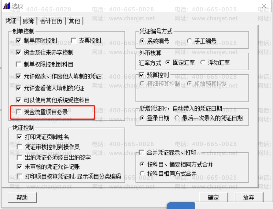 在【总账】-【设置】-【选项】中取消勾选【现金流量项目必录】,这样在有不影响现金流量的业务发生时可以不用分配现金流量项目。
