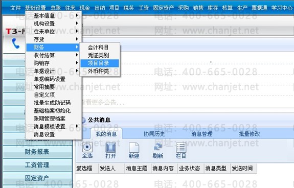 1、“基础设置”-“财务”-“项目目录”