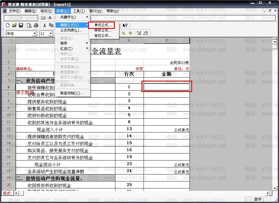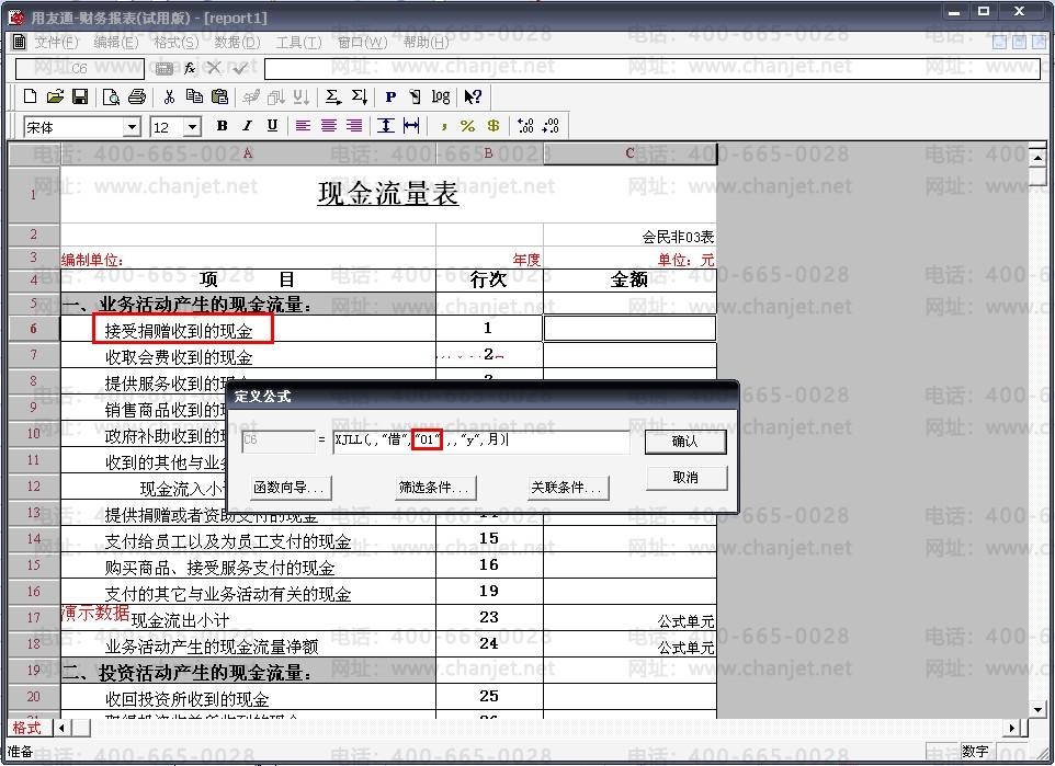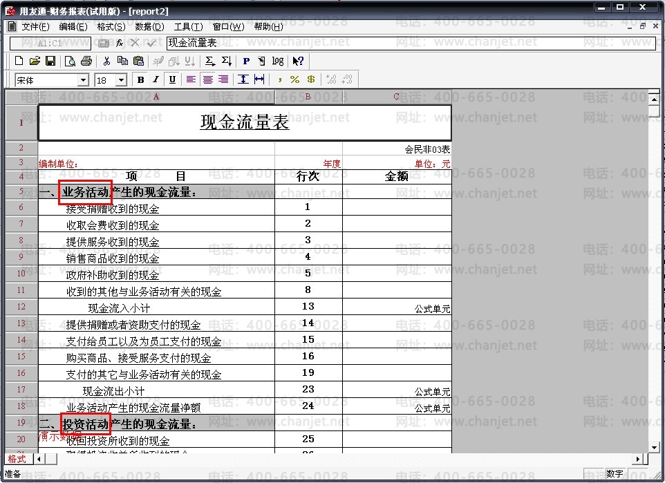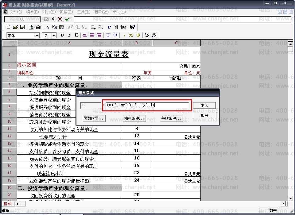 18、公式中的数字对应项目目录维护中的“项目编号”,现金流量表中的项目则对应项目目录维护中的“项目名称”