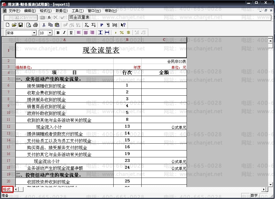 15、将现金流量表左下角点击成“格式”
