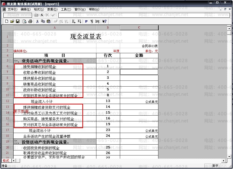 用友T3非盈利组织的现金流量项目及现金流量表的设置