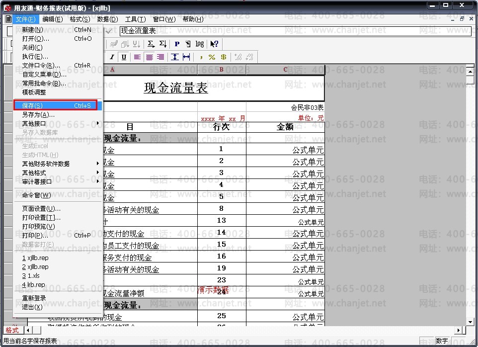 19、按照同样的方法将整张现金流量表的公式设好,然后点击“保存”即可
