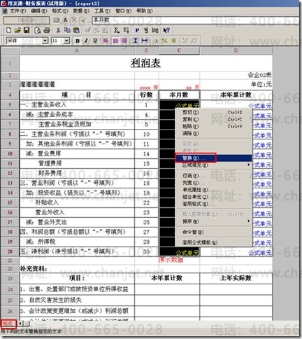 三、再次全部选中“本年累计数”公式单元,右键点击“替换”: