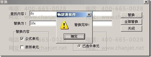 a、在替换的界面查找内容输入“fs”,替换为输入“lfs”,替换内容是“公式单元”,替换范围是“已选中单元”,点击“全部替换”: