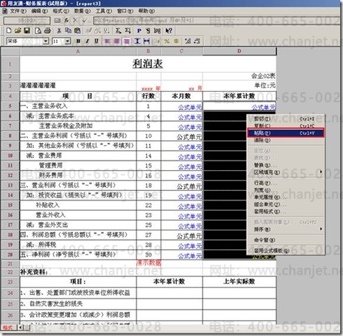 二、全部选中“本年累计数”公式单元,右键点“粘贴”: