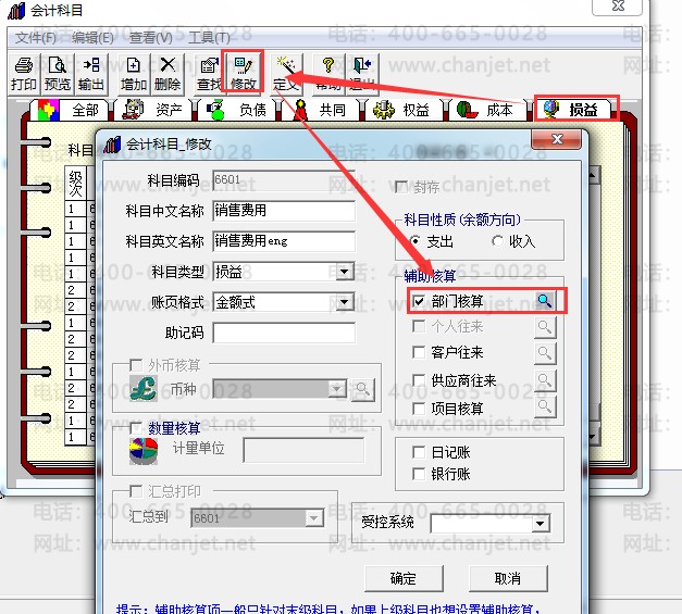 业务分析:通过设置费用类明细科目以及辅助核算来实现。