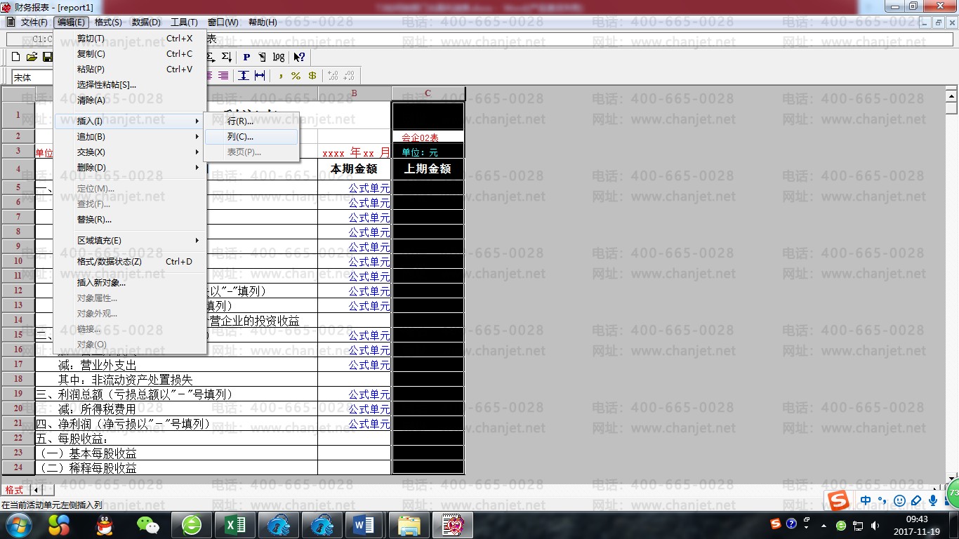 8、点击左下角红色“格式”,变成“数据”后,再点击“数据”菜单下的“关键字”录入对应的月份就可以出具分部分的利润表了。