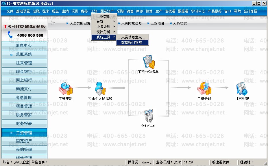 (2)登陆软件,选择工资类别打开,点击“工资”——“系统工具”——“数据接口管理。