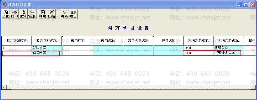 5、再依次点击"核算”-"科目设置”-"存货对方科目”,收发类别选择"销售出库”,对方 科目选择"主营业务成本”;