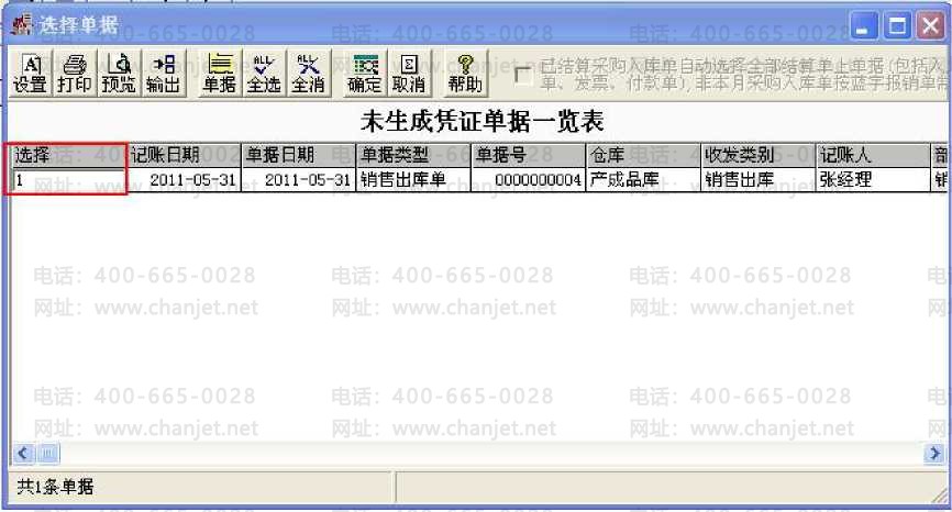 库单,仓库选择"产成品库”