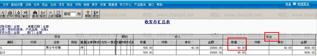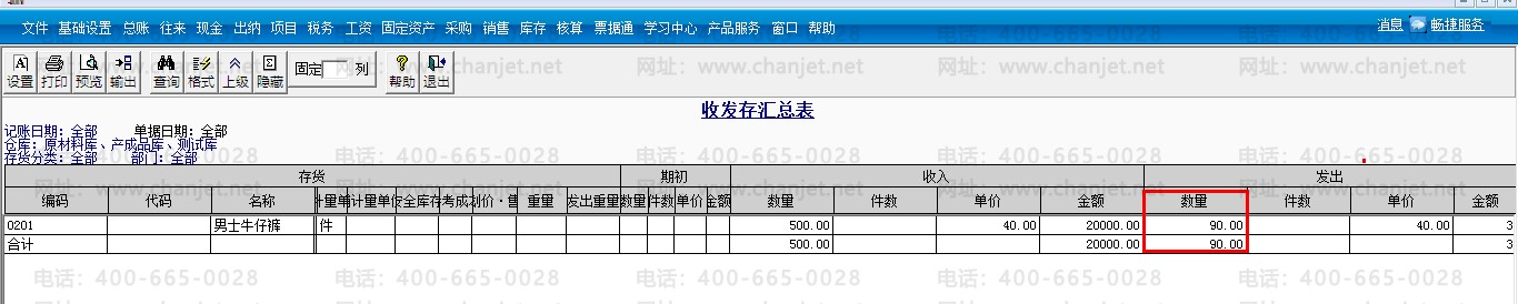 3.记账之后,查看收发存汇总表,可以查看是以发票上的数量90件来计算成本。