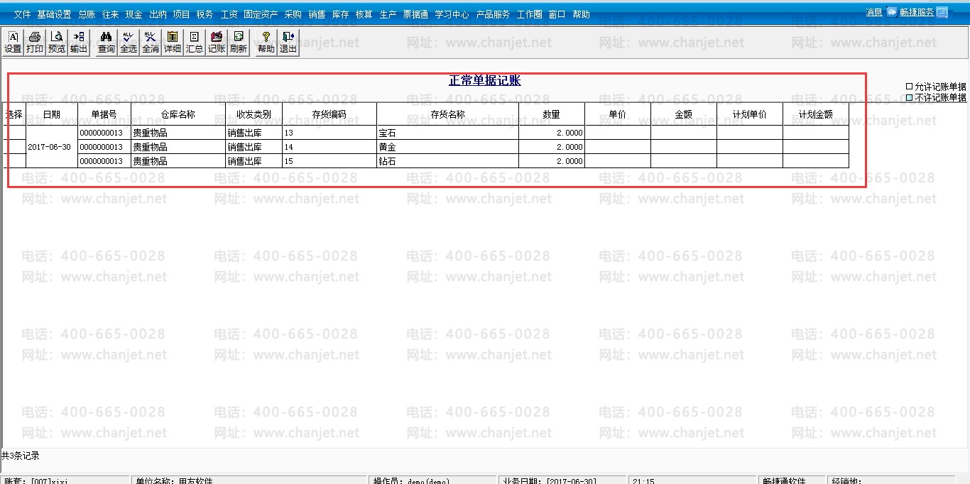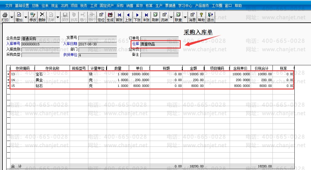 1. 贵重物品入库,进入个别计价法仓库,正常结算记账。