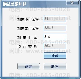 期末,点击“汇兑损益”,自动显示本账户期末的外币和本币金额,录入期末调整汇率后,点击“计算”,自动计算汇兑损益的差额;