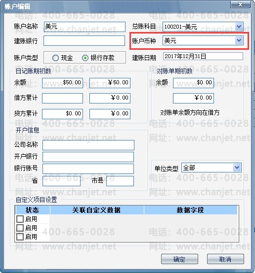添加账户,账户币种选择美元,对应挂接的总账科目选择美元现金科目;