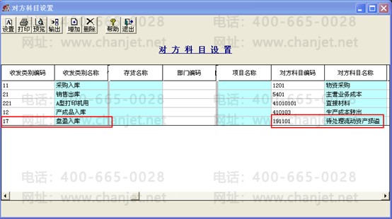 6、依次点击“核算”-“科目设置”-“存货对方科目”,收发类别选择“盘盈入库”,对方科目选择“191101待处理流动资产损溢”;