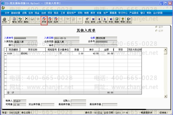 3、再点击“其他入库单”,点击“审核”;