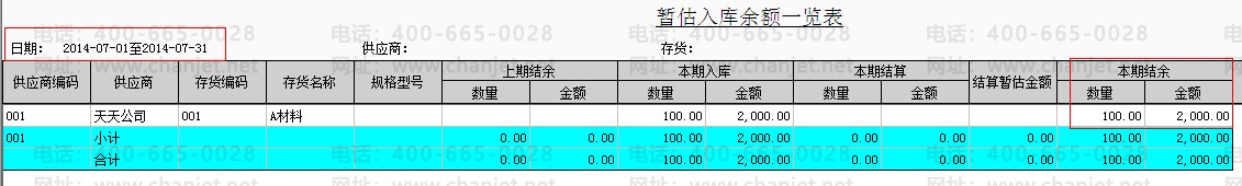 将该条采购入库记录在核算模块做正常单据记账后,在查看暂估入库余额表和暂估材料余额表。