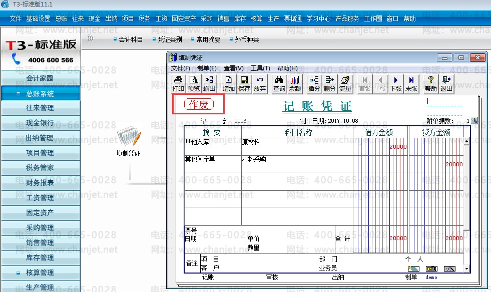 7.再去总账【填制凭证】处查看这张冲销凭证,可以看到这张冲销凭证已经打上【作废】标识。