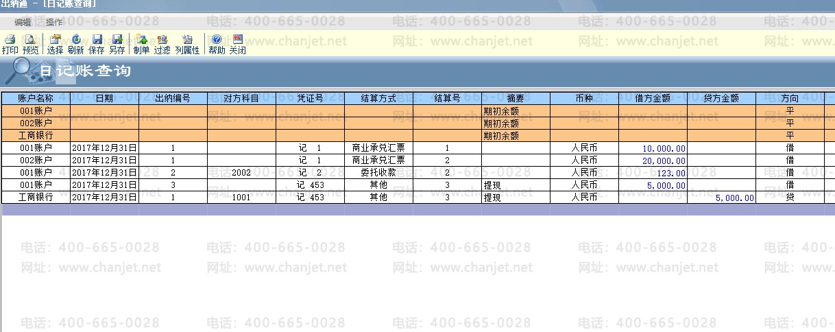 (1)查询日记账