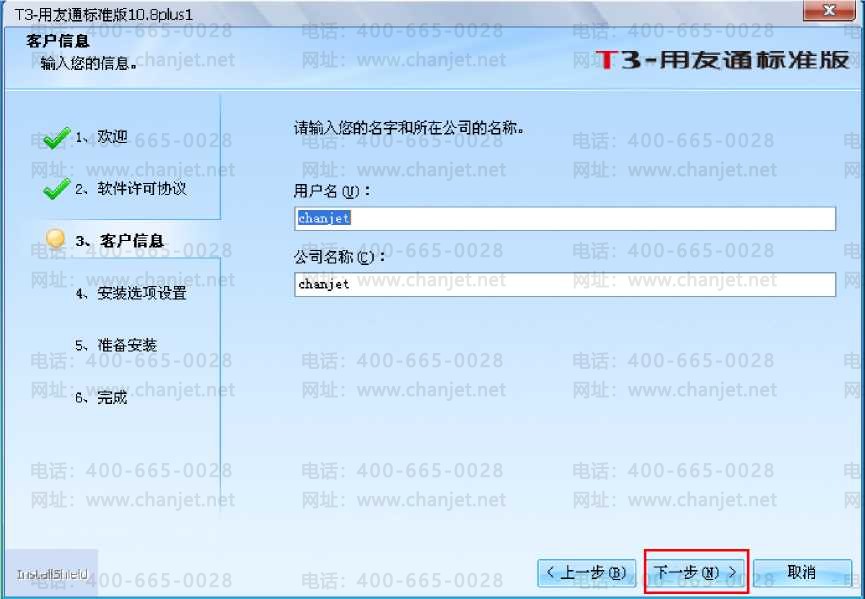 ⑷“用户名"和“公司名称"默认,无需更改,直接点击“下一步二如下图所示: