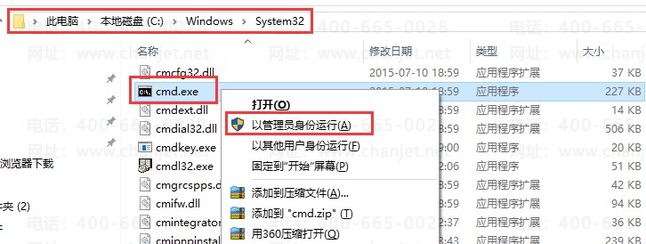 (1)以管理员身份运行cmd.exe(特别是win10系统)