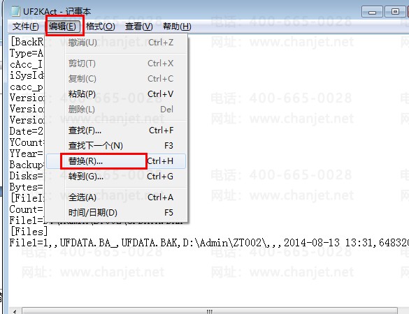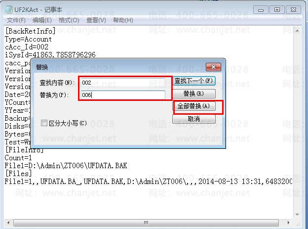 6. 依次点击编辑-替换,将002替换成006(所需要产生的账套号)