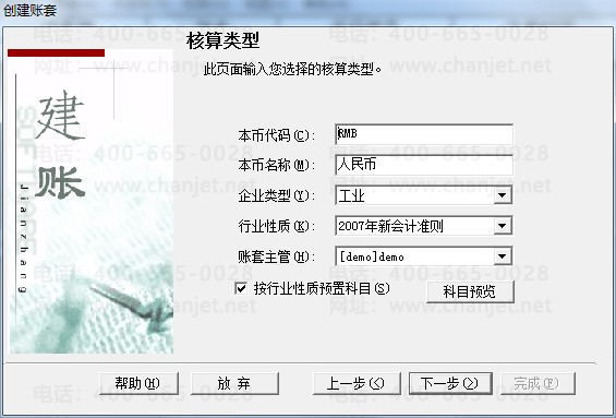 2.点击账套——建立——注意根据自己公司实际情况填写