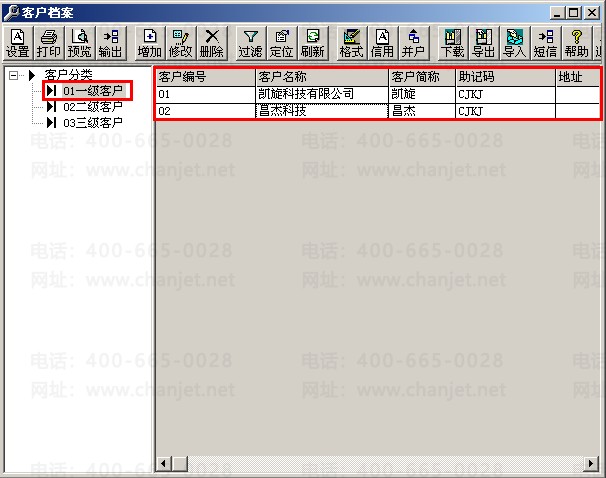 二、如果客户有分类,则点到对应的客户分类,点击“增加”,录入对应的客户信息。